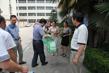 為貫徹落實(shí)省、市安委會(huì )《關(guān)于認真做好夏季安全生產(chǎn)工作的通知》精神,做好夏季安全生產(chǎn)工作,7月20日集團組織對全資控股企業(yè)進(jìn)行夏季高溫慰問(wèn)。徐憲華副董事長(cháng)、陸強新總經(jīng)理分別帶隊赴江山農化、南通科技、精華制藥、紡織染等企業(yè)生產(chǎn)一線(xiàn)慰問(wèn),送去風(fēng)油精、仁丹、毛巾等慰問(wèn)品。集團領(lǐng)導詳細了解了各企業(yè)采取的防暑降溫措施,要求克服高溫不利因素影響,落實(shí)好各項安全防范措施,確保安全生產(chǎn)無(wú)事故。
