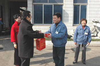 2007年春節剛過(guò),公司領(lǐng)導班子深入各投資企業(yè)開(kāi)展慰問(wèn)活動(dòng)。正要出發(fā),市經(jīng)貿委主任蔡惠中一行上門(mén)慰問(wèn)