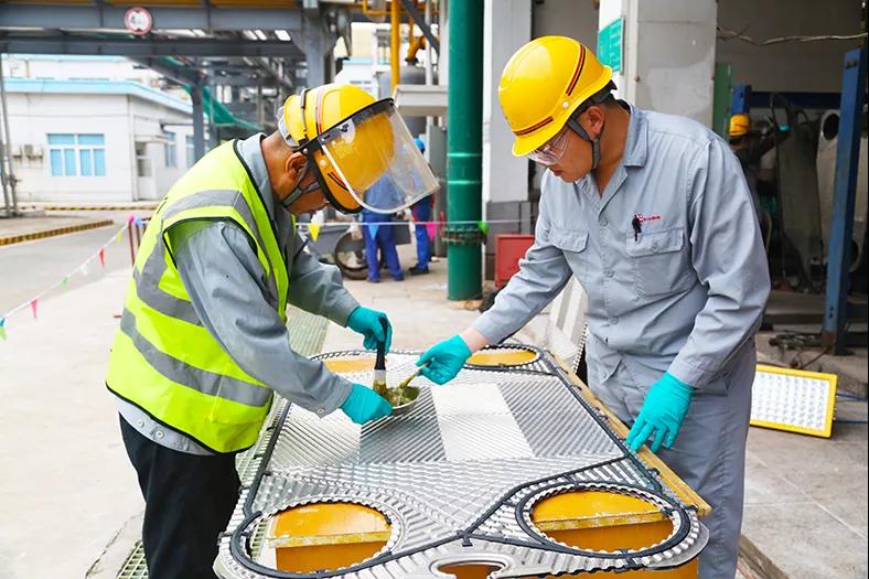 一遍遍查驗檢修作業(yè)人員是否已培訓到位,千叮嚀萬(wàn)囑咐注意安全,杜絕違章行為。業(yè)精于勤疏于嬉,行成于思毀于隨,各事業(yè)部參檢員工齊心協(xié)力,嚴謹細致地檢驗設備、比對溶劑,精益求精把好檢修質(zhì)量關(guān),嚴格按照驗收標準執行。檢修現場(chǎng),他們忙碌的身影,無(wú)處不在。為了一道焊縫,為了一根電線(xiàn),為了一塊墊片,他們常常一蹲就是半天,一站就是一天。