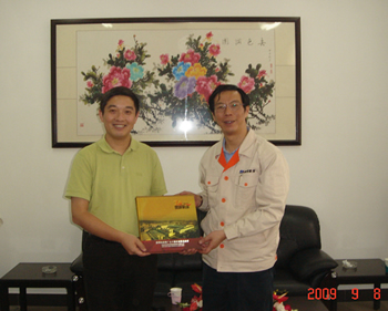 昆明機床總經(jīng)理張曉毅向陳董事長(cháng)贈送廠(chǎng)慶紀念品 |
