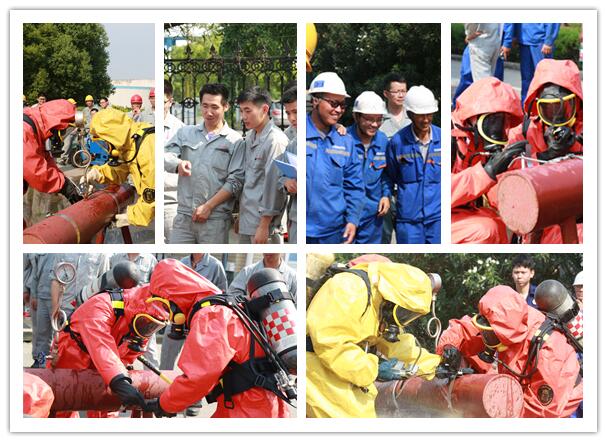 穿戴空呼器帶壓堵漏,需要檢驗參賽隊員規范穿戴空呼器、防化服的速度和熟練程度,同時(shí)還要考驗參賽隊員穿戴好空呼器、防化服進(jìn)行高效、快速帶壓堵漏的應急處置技能。