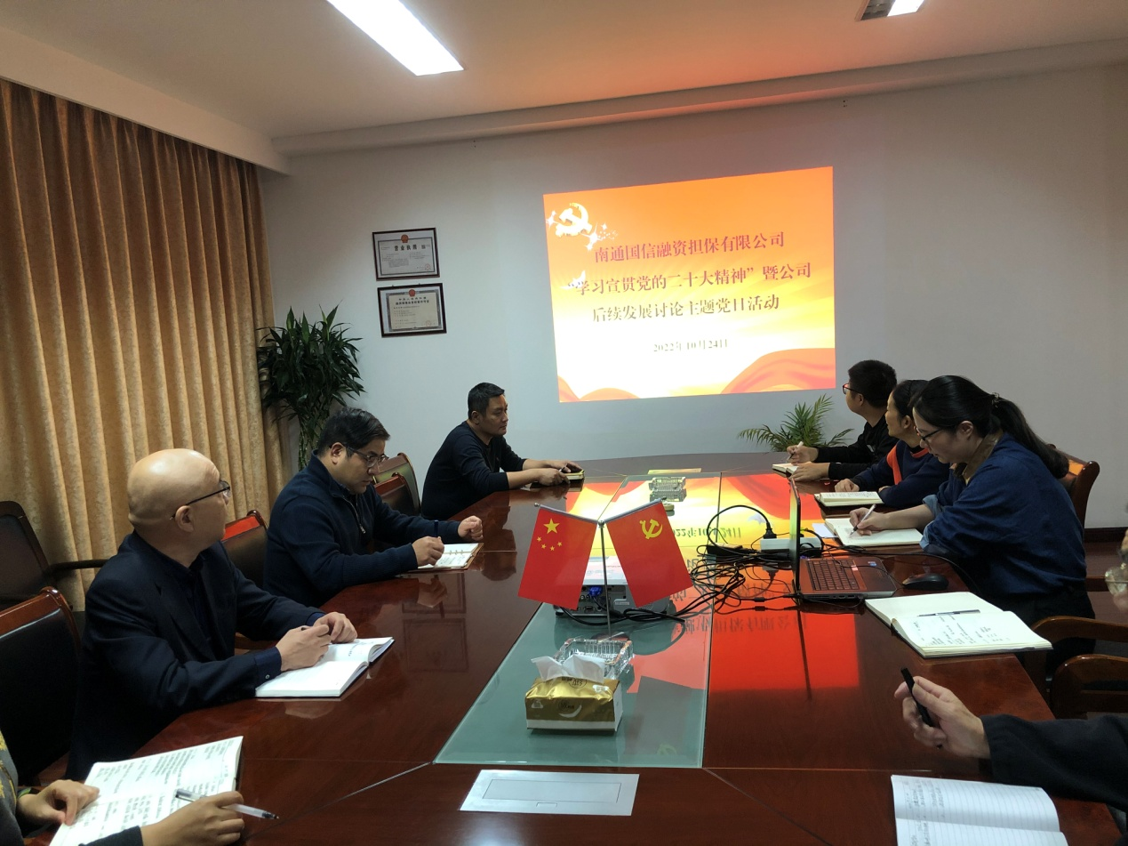 10月24日下午,國信擔保公司黨支部組織開(kāi)展了“學(xué)習宣貫黨的二十大精神”暨公司后續發(fā)展討論主題黨日活動(dòng),公司全體工作人員參加了活動(dòng)。