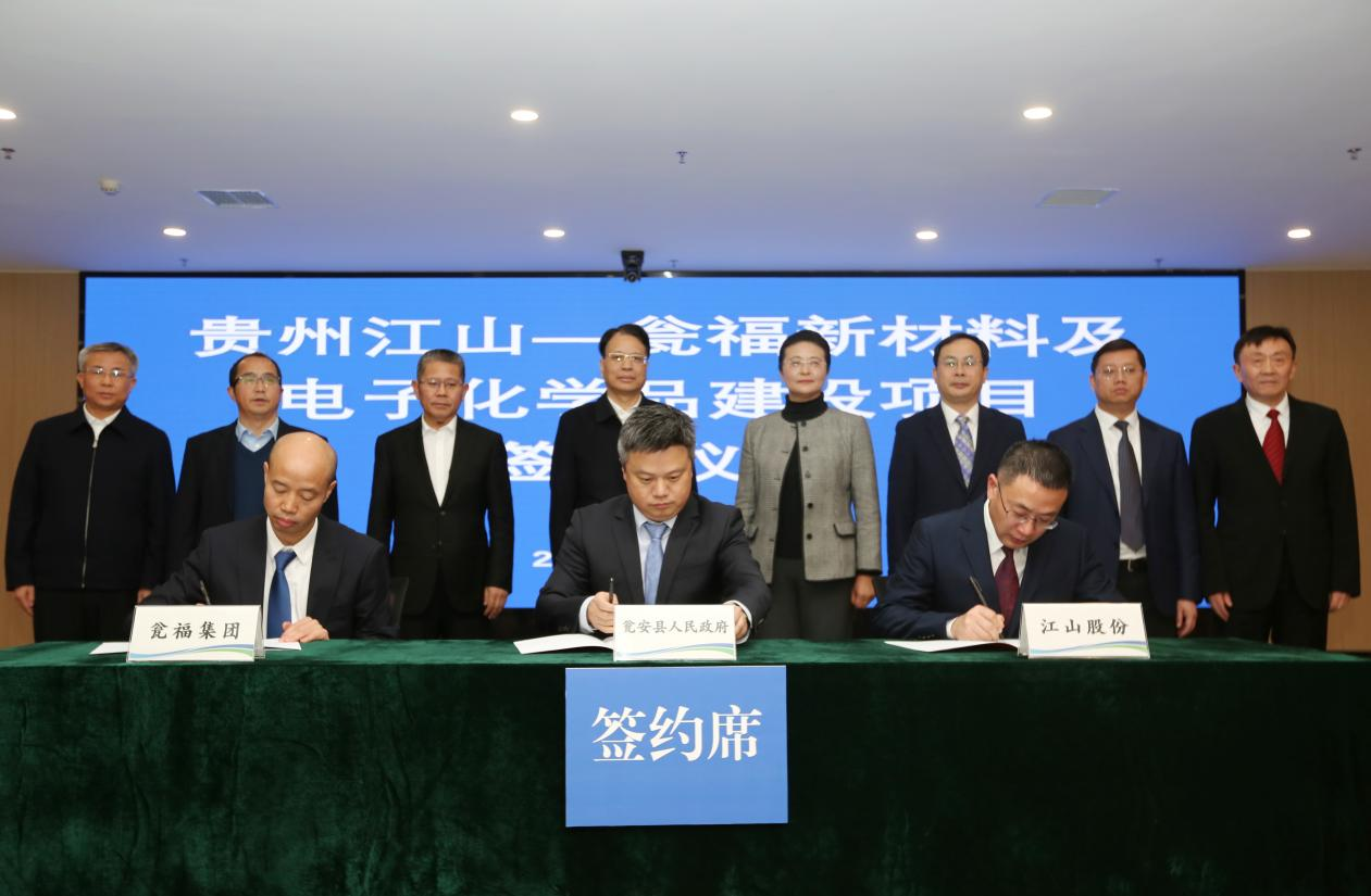 1月27日晚,貴州江山—甕福新材料及電子化學(xué)品項目簽約儀式在貴州磷化集團舉行,南通江山農藥化工股份有限公司與甕安縣人民政府、甕福(集團)有限責任公司三方簽訂投資協(xié)議,打造磷化工循環(huán)一體化產(chǎn)業(yè)鏈項目。