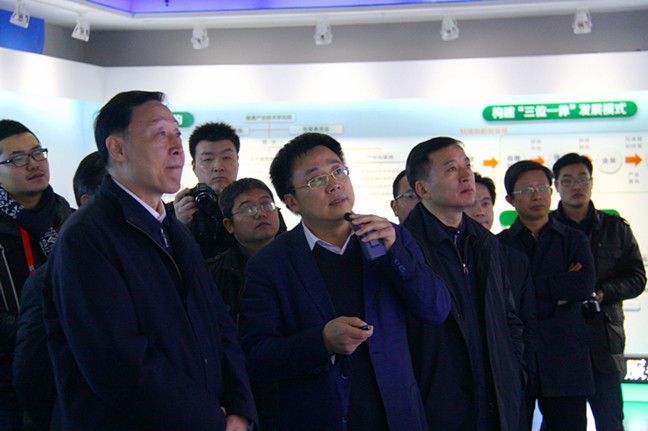 羅志軍一行在南通產(chǎn)業(yè)技術(shù)研究院展示中心認真聽(tīng)取了產(chǎn)研院總經(jīng)理沈風(fēng)雷關(guān)于研究院在構建研究機構、科技園區、產(chǎn)業(yè)基地三位一體運作模式等方面的情況介紹,詳細了解了產(chǎn)研院在智慧建筑、智能裝備、新材料、互聯(lián)網(wǎng)經(jīng)濟等領(lǐng)域的最新科研成果。在希盟智能健康監護系統模型展示前,羅志軍與企業(yè)負責人認真交流,仔細詢(xún)問(wèn)最新研究成果和產(chǎn)業(yè)化進(jìn)展。在觀(guān)看了眾誠生物納米修復材料現場(chǎng)演示后,羅志軍高興地說(shuō),這樣的科技創(chuàng )新不僅能夠有效解決企業(yè)發(fā)展中遇到的技術(shù)難題,而且在環(huán)境保護方面取得了關(guān)鍵突破。