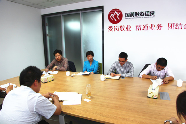 5月14日上午,市國資委監事會(huì )主席凌美娟一行2人來(lái)到南通國潤融資租賃有限公司,聯(lián)合產(chǎn)控集團審計監察部對國潤租賃公司內控制度建立和執行情況開(kāi)展審計督導。產(chǎn)控集團紀委書(shū)記、國潤公司董事黃培豐、副總經(jīng)理劉正午陪同督導。