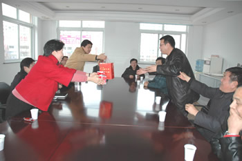 2007年春節剛過(guò),公司領(lǐng)導班子深入各投資企業(yè)開(kāi)展慰問(wèn)活動(dòng)。正要出發(fā),市經(jīng)貿委主任蔡惠中一行上門(mén)慰問(wèn)