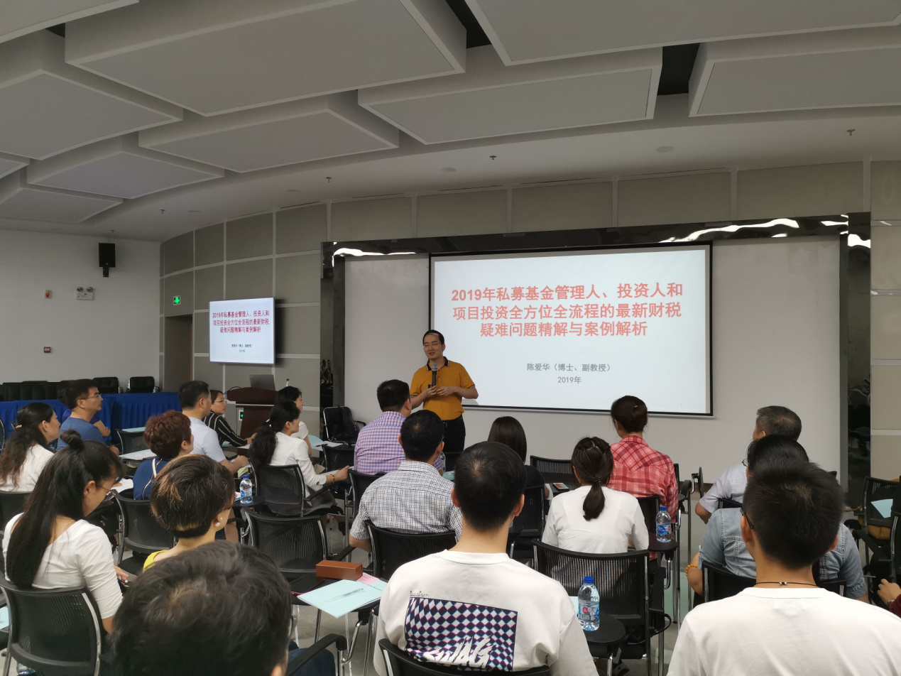 培訓邀請了廈門(mén)大學(xué)會(huì )計學(xué)博士、副教授、碩士生導師陳愛(ài)華老師進(jìn)行授課,市相關(guān)政府部門(mén)、單位、機構分管領(lǐng)導、財務(wù)人員等80余人共同參與。 陳愛(ài)華老師擅長(cháng)從會(huì )計、稅務(wù)和經(jīng)濟法律視角綜合看待經(jīng)濟業(yè)務(wù),對金融行業(yè)、類(lèi)金融行業(yè)等的會(huì )計、稅法及經(jīng)濟相關(guān)法律的銜接與融合有較深的理解。本次講座重點(diǎn)介紹了近年新出臺的財稅相關(guān)政策、法規,解析了2019年私募基金涉及的最新熱點(diǎn)財稅問(wèn)題和會(huì )計核算、納稅申報中涉及的疑難問(wèn)題,并分享了應對措施,對開(kāi)展私募基金財稅工作很有借鑒意義。