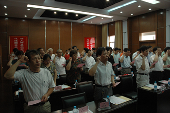 6月29日,在建黨八十八周年前夕,集團黨委隆重舉行迎“七一”暨先進(jìn)表彰大會(huì )。集團黨委及領(lǐng)導班子成員、所屬企事單位黨組織負責人、離休干部代表、本部黨員共70余人參加會(huì )議。會(huì )議由黨委副書(shū)記、副董事長(cháng)徐憲華主持。 集團黨委書(shū)記、董事長(cháng)陳照東作重要講話(huà),回顧了中國共產(chǎn)黨建黨八十八年來(lái)走過(guò)的光輝歷程,總結了過(guò)去一年集團黨建工作在思想建設、組織建設、廉政建設、老干部工作等方面所取得的成績(jì);通報了今年上半年經(jīng)濟工作基本情況:1-6月份主要指標同比回落,但二季度環(huán)比回升,初步呈現復蘇向好趨勢;企業(yè)搬遷、資產(chǎn)盤(pán)活、上市融資、資源整合等一批項目推進(jìn)工作扎實(shí)有效,空殼企業(yè)、直管資產(chǎn)、安全生產(chǎn)等管理工作進(jìn)一步加強。集團黨委堅持推進(jìn)黨的建設和經(jīng)濟建設同步發(fā)展,為有效應對金融危機、保持經(jīng)濟平穩、健康發(fā)展起到堅強的領(lǐng)導核心作用。 針對下半年黨建及經(jīng)濟工作,陳照東書(shū)記會(huì )上要求各級黨組織以保增長(cháng)為中心目標、以服務(wù)項目發(fā)展為第一要務(wù),通過(guò)深入開(kāi)展學(xué)習實(shí)踐科學(xué)發(fā)展觀(guān)活動(dòng),不斷提高黨組織凝聚力和戰斗力,為完成年度目標任務(wù)提供強有力的思想和組織保障。他指出下半年經(jīng)濟工作要突出五個(gè)“抓”:集中精力抓盤(pán)活、一著(zhù)不讓抓搬遷、堅定不移抓上市、積極有效抓整合,練好內功抓管理;以黨建工作的高效運轉,推動(dòng)經(jīng)濟實(shí)現又好又快發(fā)展,奪取“扎實(shí)保增長(cháng)”的全面勝利。 會(huì )議表彰了江山股份黨委等4家“五好”黨組織、王明華等47名優(yōu)秀黨員、王建華等23名優(yōu)秀黨務(wù)工作者,并向光榮入黨60年的離休干部代表贈送了紀念品。江山股份黨委副書(shū)記陶坤山等受表彰的先進(jìn)集體和個(gè)人代表作了大會(huì )發(fā)言。 會(huì )上還舉行了新老黨員在黨旗下宣誓和重溫入黨誓詞儀式。