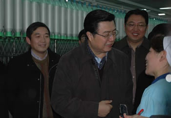 帶著(zhù)市委、市政府的親切關(guān)懷,市委書(shū)記羅一民在有關(guān)部門(mén)、產(chǎn)控集團負責人陪同下來(lái)到企業(yè)一線(xiàn)慰問(wèn),他一邊察看企業(yè)生產(chǎn)情況,一邊與職工親切交流。生產(chǎn)組長(cháng)朱玉玲顧不上擦臉上的汗,她笑著(zhù)告訴羅書(shū)記:“企業(yè)效益還不錯,雖然忙了點(diǎn),但干得高興,我們上下一條心,一定把這個(gè)企業(yè)建設得更好?!睂β毠兏邼q的工作熱情,羅一民高興地蹺起大拇指。他動(dòng)情地說(shuō),我們每次走訪(fǎng)困難企業(yè),既是慰問(wèn)也是學(xué)習。許多困難企業(yè)的領(lǐng)導班子奮發(fā)進(jìn)取、默默奉獻,這正是新時(shí)期南通精神的具體體現,也是企業(yè)危中搶機、生存發(fā)展的最大動(dòng)力源泉。他祝愿在新的一年,企業(yè)全體干部職工繼續齊心協(xié)力,取得更好的發(fā)展成果。他還要求隨同慰問(wèn)的經(jīng)貿委、總工會(huì )等部門(mén)同志,多關(guān)心困難企業(yè)和困難職工,切實(shí)為他們解決實(shí)際困難。