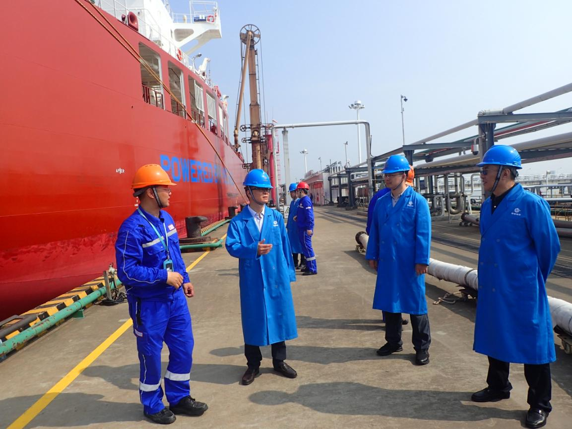 2日上午,許加?,F場(chǎng)考察了南通港口華盛碼頭、油品罐區、控制室和華洋庫區,認真詢(xún)問(wèn)南通港口的近幾年發(fā)展狀況,詳細了解南通港口當前發(fā)展面臨的問(wèn)題。南通港口總經(jīng)理蔡權向許加海詳細介紹了庫區安全升級改造和自控系統項目的進(jìn)度,以及儲罐“二次密封”專(zhuān)項改造的完成情況。許加海對南通港口的經(jīng)營(yíng)效益和現場(chǎng)管理工作表示肯定,在華盛碼頭對一線(xiàn)員工進(jìn)行了慰問(wèn),對他們?yōu)楣景l(fā)展所作的默默奉獻表示感謝,同時(shí)要求他們作業(yè)時(shí)要注意規范操作,確保生產(chǎn)安全。