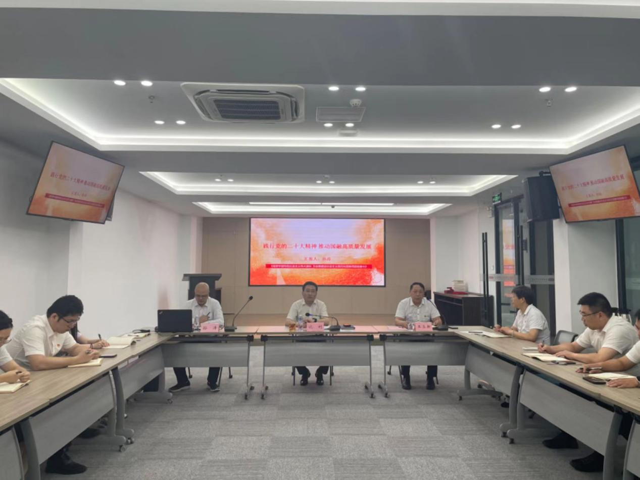 他指出,要抓實(shí)抓牢黨員干部的政治理論學(xué)習,建設學(xué)習型黨組織。同時(shí),要加強公司內部督查力度,建立內審機制,通過(guò)經(jīng)常性、深入性的監督檢查,確保各項工作任務(wù)不折不扣落到實(shí)處,加強黨建與經(jīng)營(yíng)工作的融合,助推公司高質(zhì)量發(fā)展。 隨后,國融公司黨委委員、副總經(jīng)理孫濤以《踐行黨的二十大精神 推動(dòng)國融高質(zhì)量發(fā)展》為題,帶領(lǐng)公司黨員一起學(xué)習黨的二十大報告精髓,結合公司實(shí)際,從三方面與大家分享自己學(xué)習黨的二十大精神的體會(huì )與收獲,積極引導黨員干部堅持學(xué)習、堅定信心、奮勇前行,攜手共譜國融公司新篇章。
