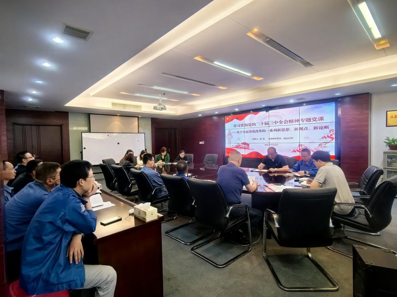 公司支部組織委員、副總經(jīng)理徐翔結合學(xué)習貫徹黨的二十屆三中全會(huì )精神的有關(guān)工作要求,為全體黨員講授了一堂題為《黨的二十屆三中全會(huì )中關(guān)于全面深化改革的一系列新思想、新觀(guān)點(diǎn)、新論斷》的專(zhuān)題黨課。黨課從十個(gè)方面深入淺出地解讀了關(guān)于黨中央全面推進(jìn)深化改革的重大現實(shí)意義和深遠歷史意義。